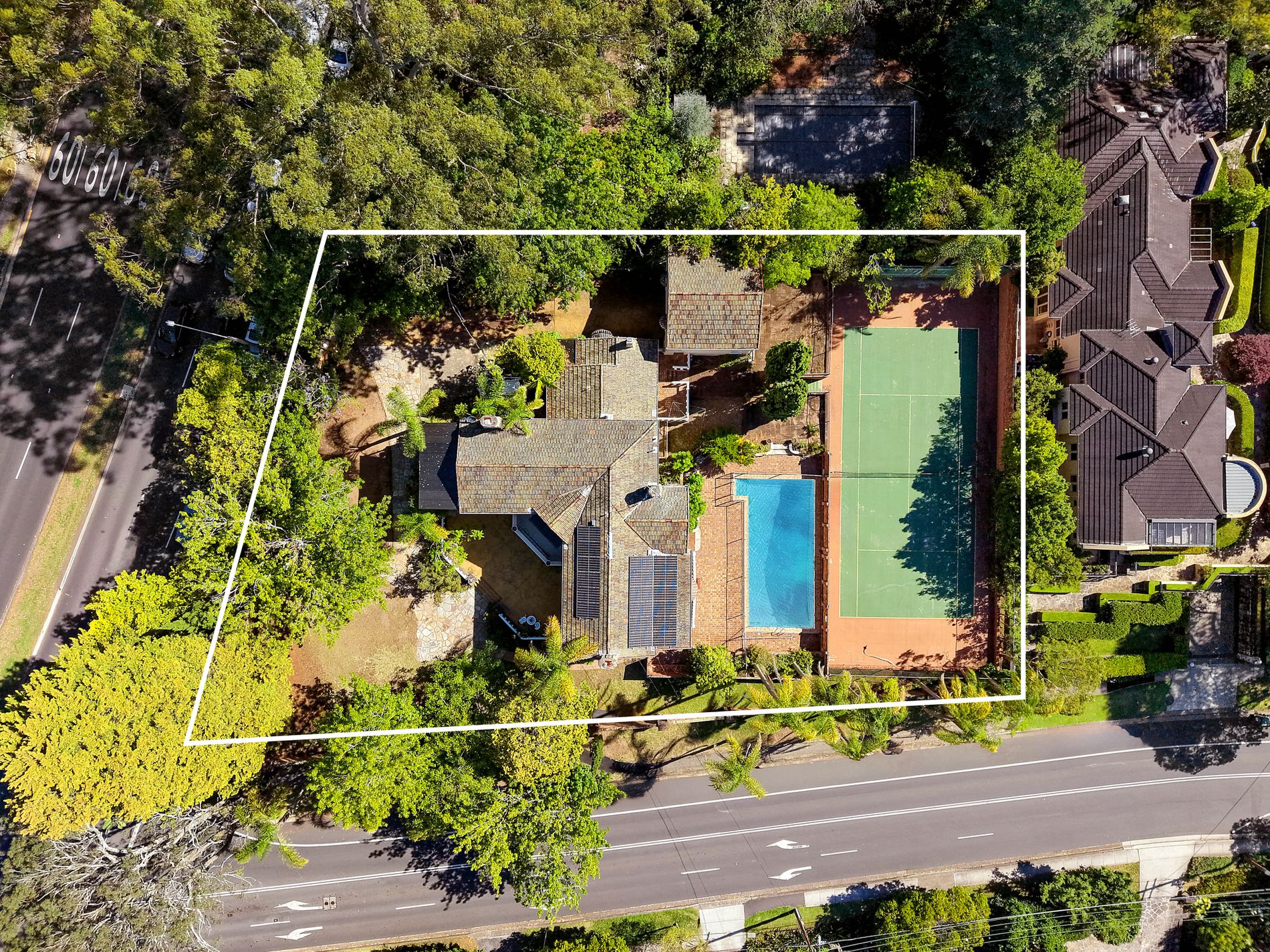 The grounds are nothing short of extraordinary. Established gardens frame the home, while the rear of the property reveals a private recreational haven featuring a full tennis court, swimming pool and entertaining courtyard—a true lifestyle offering rarely matched on the Upper North Shore. The expansive landholding, multiple access points and corner position further enhance its appeal for future enhancement or redevelopment.